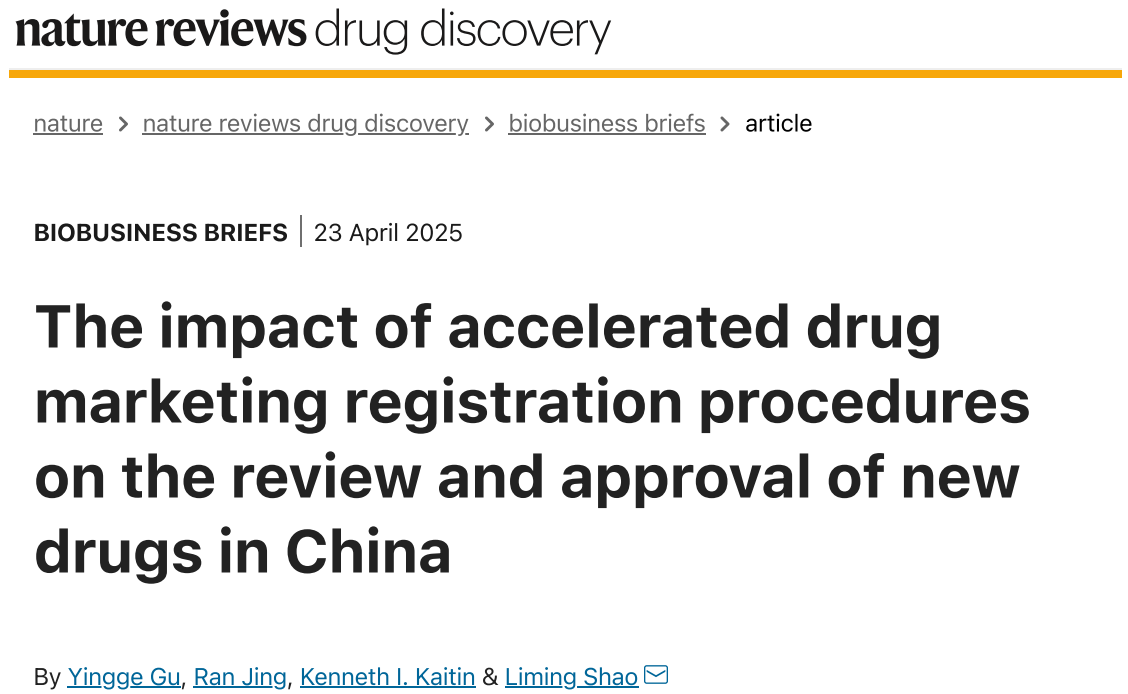 4月23日,色情网址大全 教授、上海市色情网址大全研发协同创新中心主任邵黎明及其智库团队的研究文章“中国药品加快上市注册程序对新药审评审批的影响”(The impact of accelerated drug marketing registration procedures on the review and approval of new drugs in China)在Nature Reviews Drug Discovery期刊上线发表。