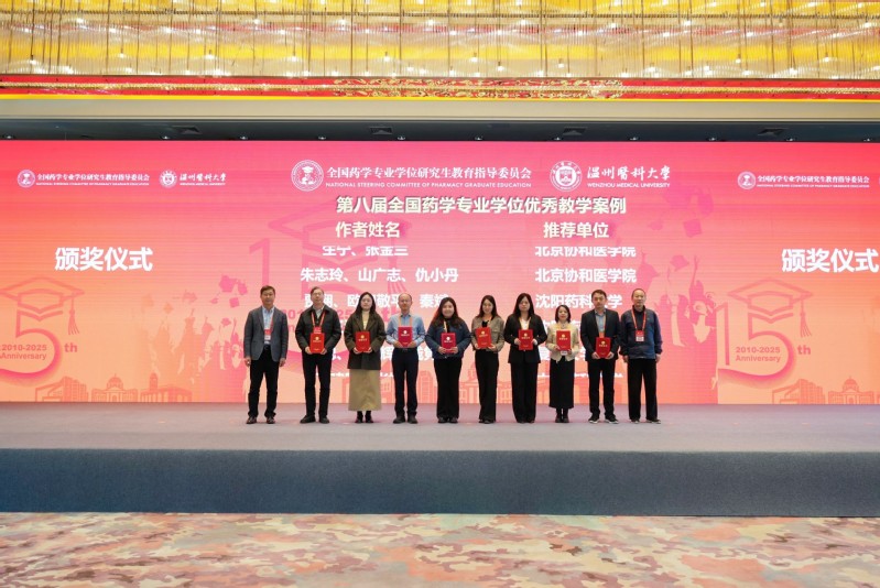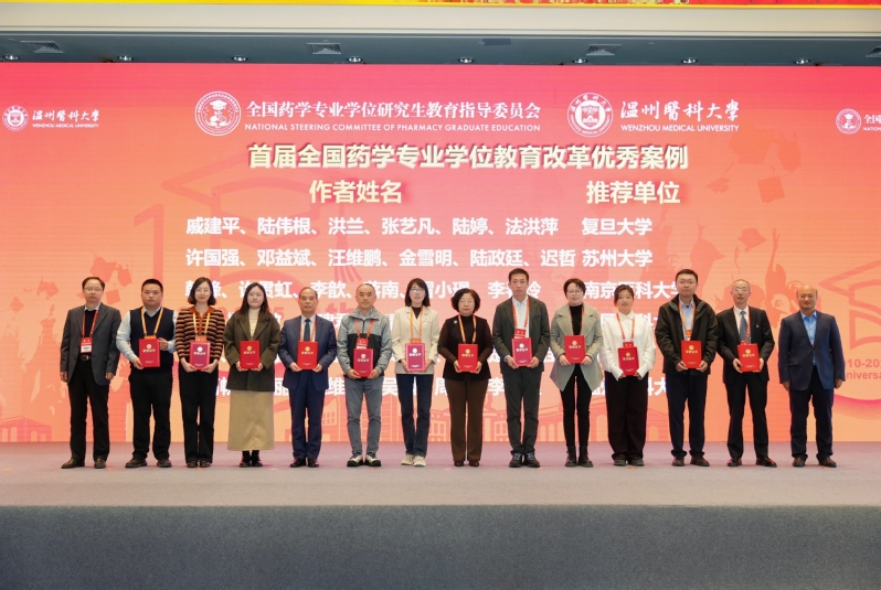 2025年11月20日,由全国药学专业学位研究生教育指导委员会主办、温州医科大学承办的“2025年全国药学专业学位研究生教育年会暨药学专业学位教育设立十五周年纪念大会”在温州召开。会议举行了第八届全国药学专业学位优秀教学案例和首届全国药学专业学位教育改革优秀案例颁奖仪式。我院荣获优秀教学案例、教育改革优秀案例各一项。