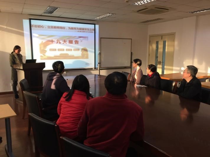 2017年11月23日,化学南楼325会议室内,教工第七支部党员们以支部书记陈瑛同志讲堂课的形式再次领会党的十九大精神。